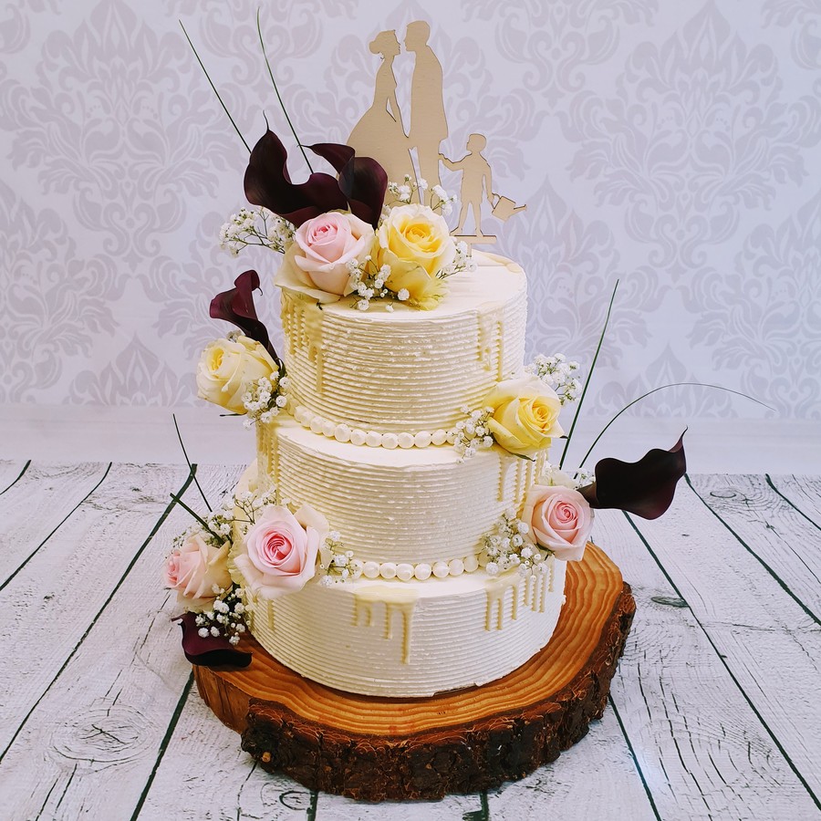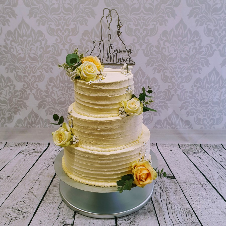 Gerne übernehmen wir die Abstimmung mit eurem Floristen, damit Torte und Blumendekor wie aus einem Guss wirken.